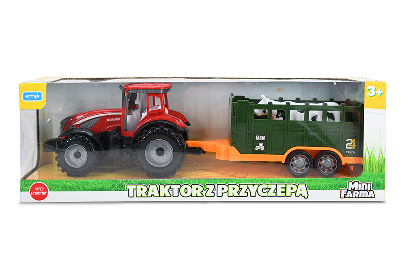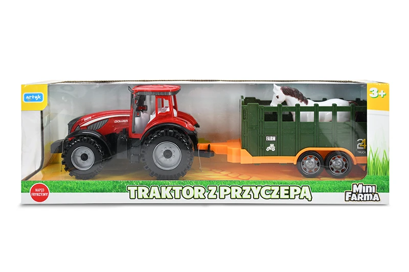 - Napęd frykcyjny – Traktor z łatwością wprawiany jest w ruch, co zapewnia dynamiczną i angażującą zabawę.