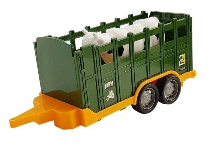 Traktor wyposażony jest w praktyczny napęd frykcyjny, który sprawia, że łatwo wprawić go w ruch. Przyczepa doskonale nadaje się do przewożenia zwierzątek i innych akcesoriów. Zestaw dostępny jest w dwóch wzorach – z krową lub koniem, co pozwala dostosować go do zainteresowań dziecka. Całkowita długość zestawu wynosi 45 cm, a jego kompaktowe opakowanie (46,5 x 15 x 11,5 cm) jest wygodne w przechowywaniu i transporcie.
