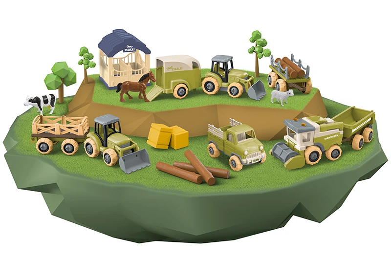 - Realistyczne odwzorowanie maszyny rolniczej – Traktor, przyczepy, zwierzęta i inne akcesoria pozwalają dziecku na pełne zanurzenie w świecie farmy, co sprzyja rozwijaniu wyobraźni.