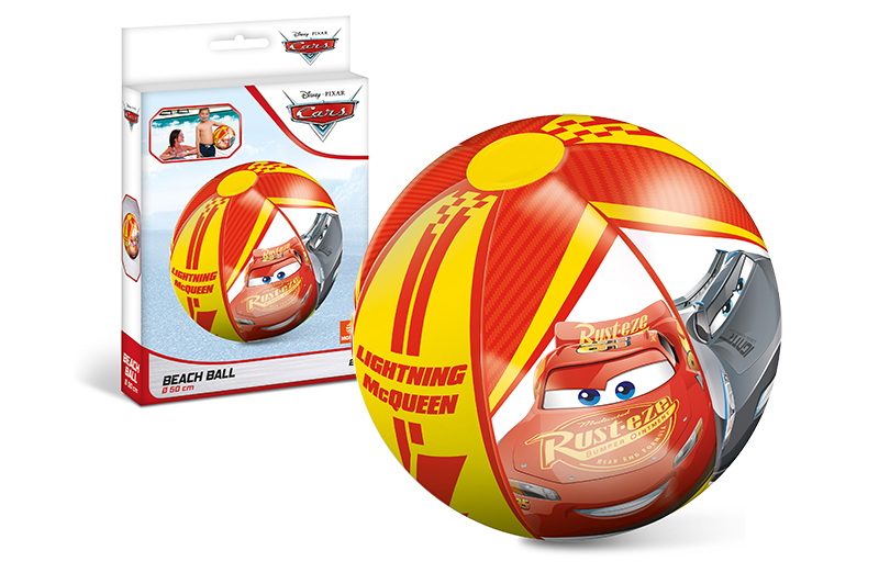 W komplecie znajduje się jedna dmuchana piłka plażowa z motywem CARS 3. Produkt