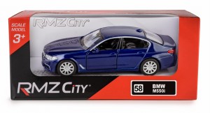 RMZ City – Metalowy BMW M550i 1:39 Pull-Back, Otwierane Drzwi, Niebieski (K-867)