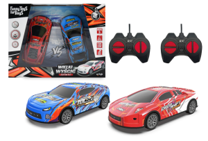 - Kompletny, podwójny zestaw RC zawierający dwa samochody (czerwony i niebieski) oraz dwa wygodne piloty, gotowy do wyścigów w parach.