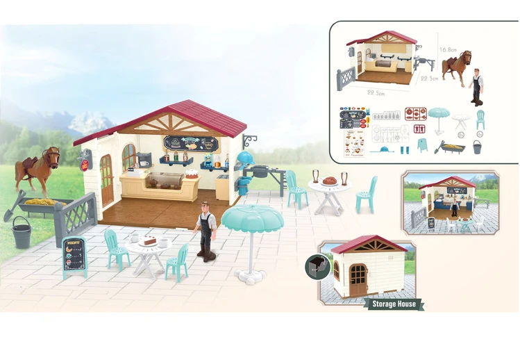 Zestaw Mini Farma Kawiarnia Konie Figurki Edukacyjne dla Dzieci 3+